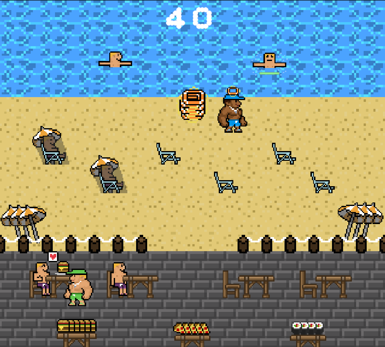 - Swimmers will require a Life Preserver, Beachgoers will require Umbrellas, and the Customers will show the kind of food they want above them.